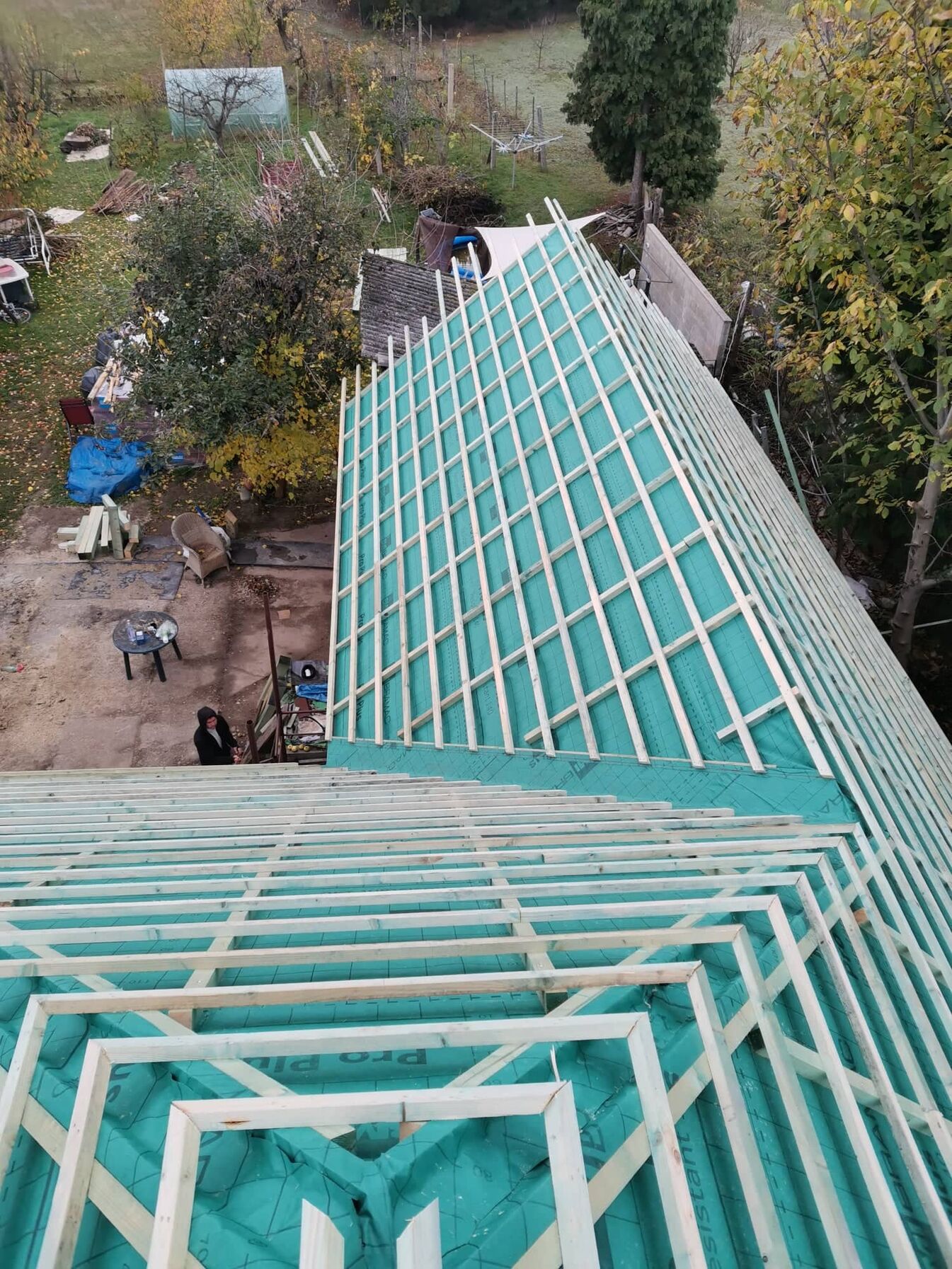 Egyre hullább vagyok de menetelünk tovább. Élek és vápák a helyükön és 18db. hosszú csonkaszarufát is be tudtunk építeni. Képet nem nagyon tudok készíteni mert sötétedésig nyomom a tulajdonossal hogy mielőbb fólia alá kerüljön a kecó. Mára némi esőt ígértek ami nagyon nem jó hír mert bent laknak. Remélem nem lesz belőle semmi.