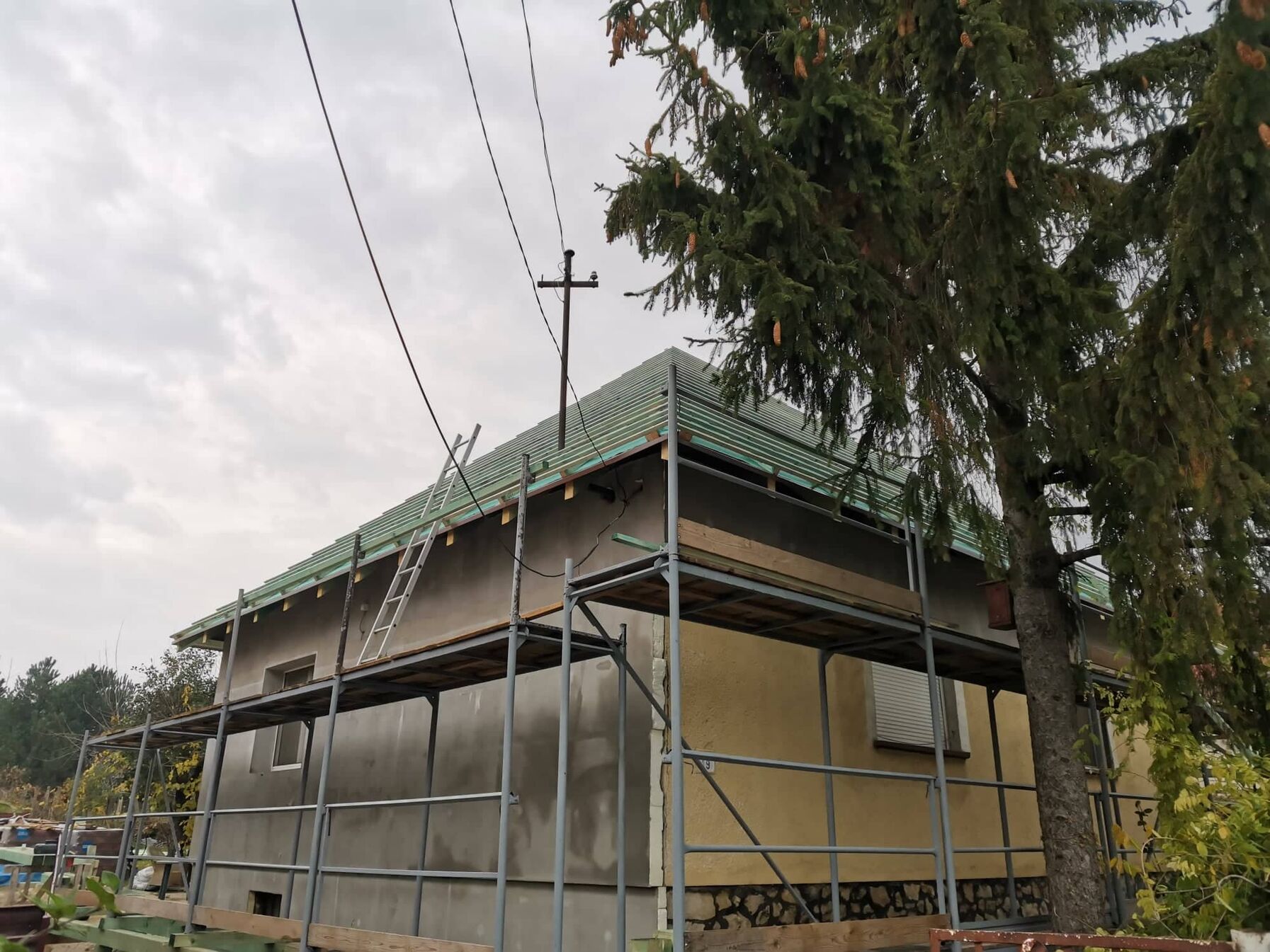 Tegnap beállványoztuk a maradék ereszvonalat hogy körbe tudjam járni és elkészíteni rendesen. Szerdán remélem nagyot lépek előre ezen a vonalon.