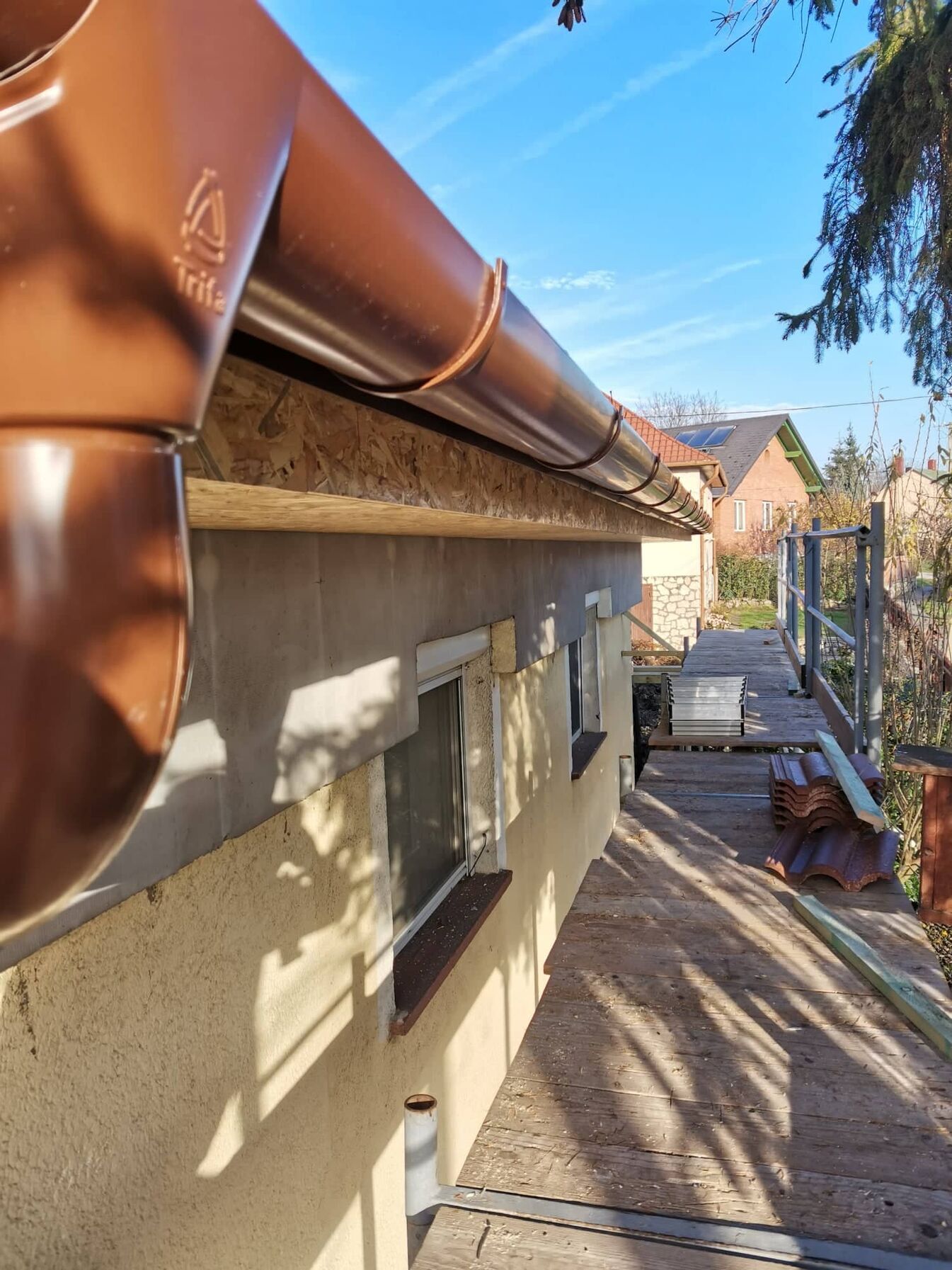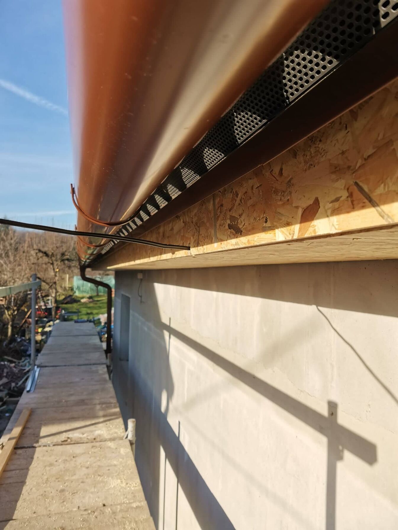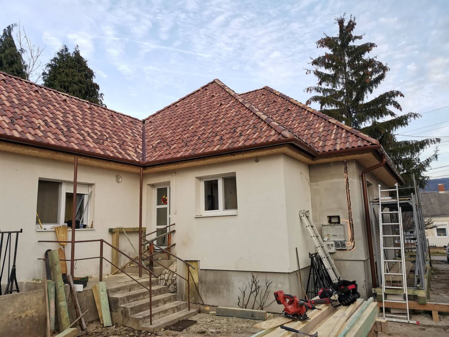 Tegnap kikeveredtem a vacakolós részből és egyből jobban haladtam. Befejeztem hátul a nagy kontyot és elöl a garázs feletti részt. Mára maradt a legnagyobb hátsó oldal amivel remélem tudok majd végezni. Meglátjuk. Ha sikerülne akkor hétfőre csak a terasz plafonja maradna meg.