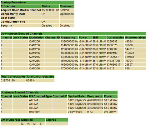 A bejövő jelszint se túl acélos a kimenőnek meg "üvöltenie" kell, hogy "meghallják"Nézd meg a kábelezést, csatlakozók nem lazultak e, kábelek állapota jó e. Írd le miket találtál a modem felé menő kábelen, ha van TAP osztó aminek a TAP ágába van dugva a modem vezetéke, akkor azt cseréld elosztóra, a TAP csillapításával fog növekedni a vételi és csökkenni az adási jelszint.