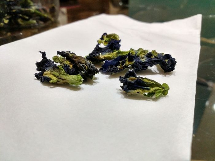 Belőle (pillangóborsó?) készült tea. Önmagában nincs sok íze, de még nem jöttem rá, hogyan lehetne feldobni.
