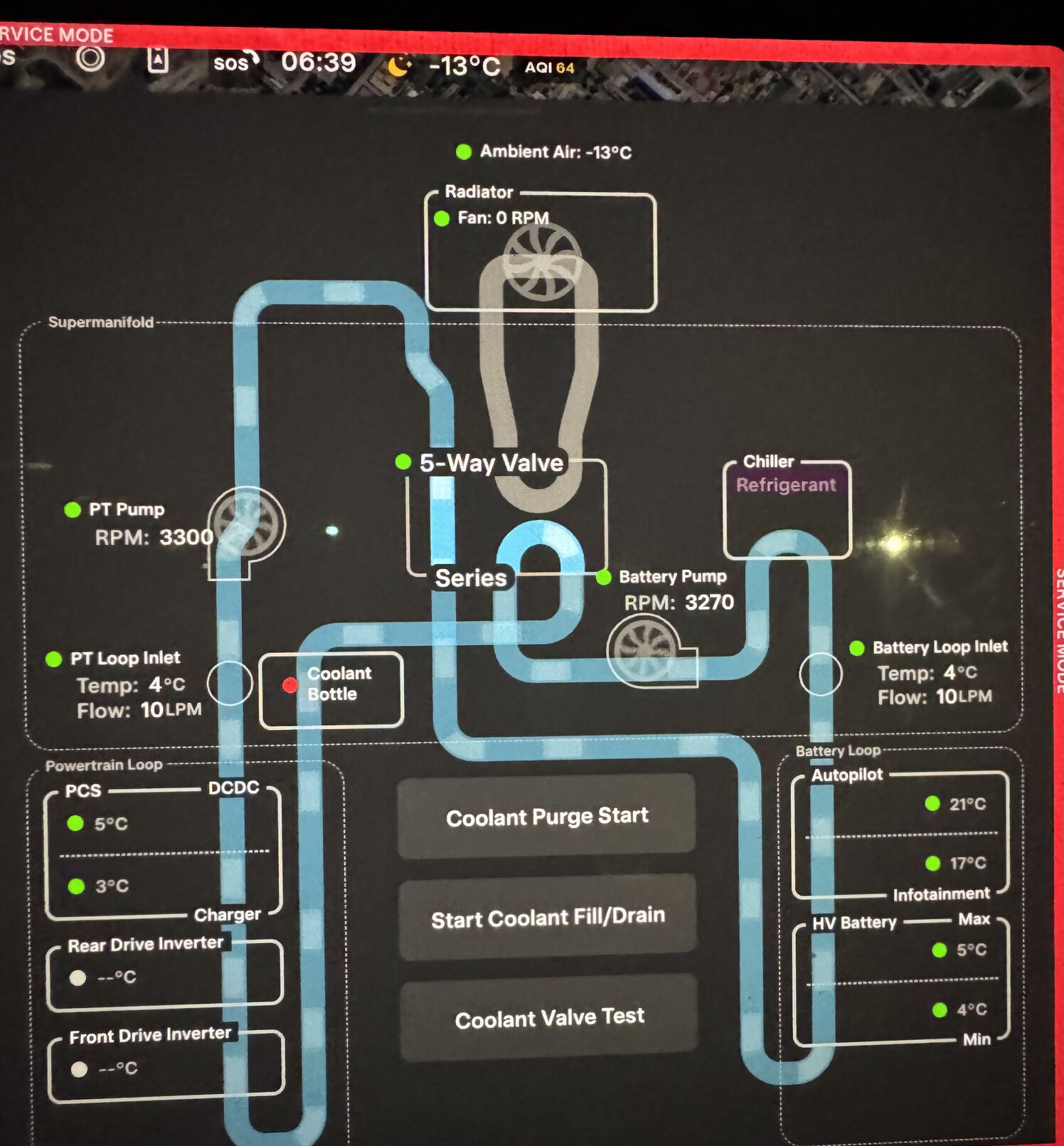 Csak szervizmenü. Értesítésként az egyik rettenetesen hideg téli hajnalon, csillaggarázsból indulva a biztonsági funkciókat dobálta el (AEB, regen stb... arról értesített), de leállás után már jó volt. Akkor néztem bele a szervizmenübe, hogy csókolom, ez mi volt.