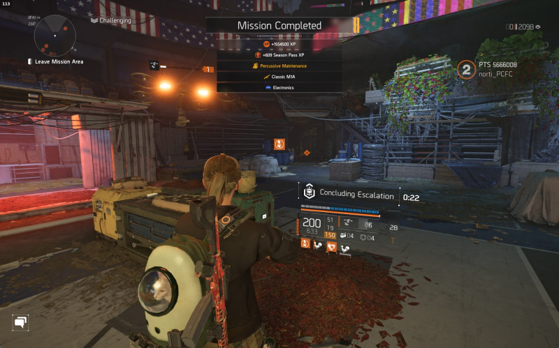 Jelenleg a PTS-en 60 perc az időlimit Escalation tiertől függetlenül a District Unionra.Tier 0 - 18 perc körül van kényelmesen még alap 30-as szintű fegyverrel is soloban (ez nyilván Heroicon is így van, 18-as szintűvel még nekem hosszabb). Sok különbséget nem láttam, talán mintha 1-2 helyen kevesebb enemy lenne, meg eltűntek a robbanó hordók a hajós boss (Diesel) részről. Tier 2-n (a 200%-os szint) még simán vihető a 30-as szintűvel, nem kell Prototype, kicsit hosszabb a TTK. Prototype geart nem adott Tier 0-n, Tier 2-n meg crasheltem.