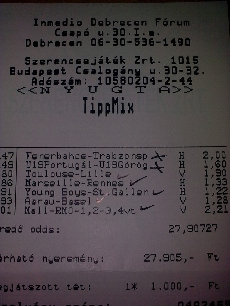 Állítólag többen nyertek a tippjeiken. Lehet, hogy 1990 Ft-ot megreszkírozok...
