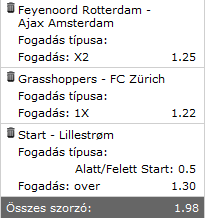 pl tegnap raktam a grasshoppers-re de egy embert nem tudnék mondani tőlük,de statisztikák szerint 81%-ban nyer hazai pályán ezért húztam be az 1x-et. -