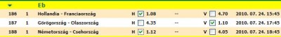 23/07/2010 20:49 CEST 317015409 1.000 HUF Nyitott Egyszeri (1.450 HUF) Labdarúgás Derry v Salthill DevonHalf TimeDerry 1.45