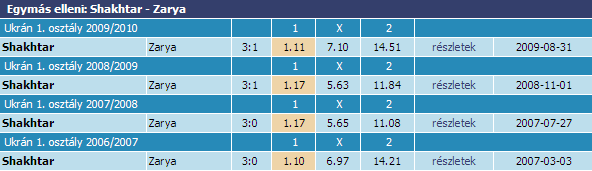(Játékidő eredménye) Valencia 1.50Shakhtar Donetsk v Zorya