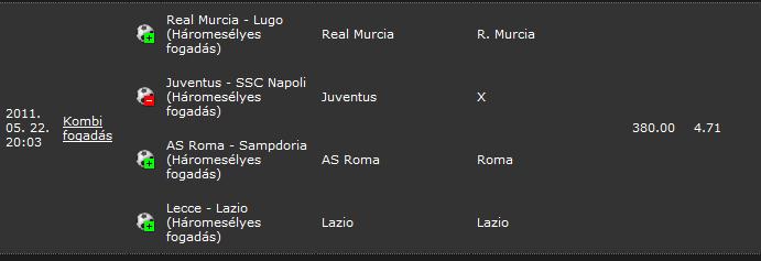 hé, az a meccs is benne volt a Vandit meg az én ámokfutásomba, azzal nyertem 600ft --> 47000ft-ot