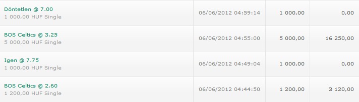 Addig oké, hogy ma kezdődő meccsekre lehet csak fogadni, de egyes sportágaknál nem igazán kiszámítható hogy mikor lesz vége..(pl tenisz, nagyobb snooker tornák) Na mindegy legközelebb majd focira rakok, most meg bízom abban hogy Murray vagy nagyon gyorsan veszít, vagy nyer.