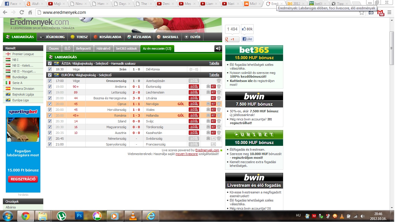 Német már 3, így az over is megvan, jó lenne ha most már svájc is vezetést szerezne, illetve a legégetőbb még a norvég gól ciprus ellen, de én már most érzem, hogy ma sem nyerek.