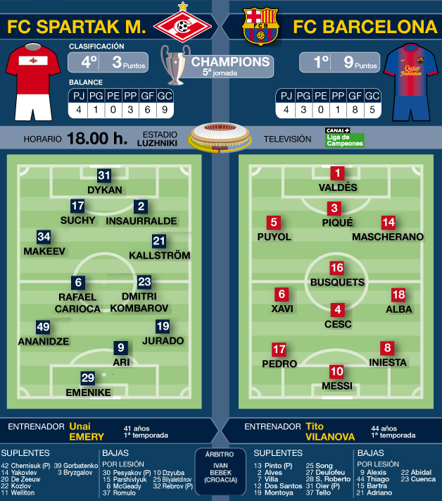 2. csapat nyer vagy döntetlen1.363Szpartak Moszkva v Barcelona