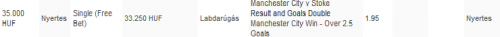 Nem az a szép, hanem hogy rakni akartam 5.20-ért hogy félidő D 1k-val, erre mikor kattintottam hirtelen elszürkült és gól.