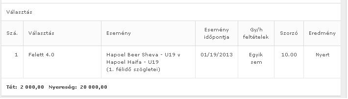 Bár, jobban örültem volna, ha a Netanya behúzza, később volt egy szorzómódosítás, szóval ~100k jöhetett volna