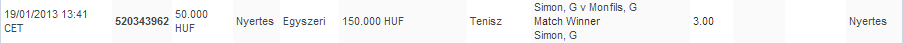 50000 volt a számlámon, erre jöhetett volna 2,5 ből 28000 ha Monfils nyer.
