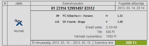 Várható nyeremény: 17385 FtNa erre megy egy visszafogadás biztos ami biztos alapon, ez már kellően nagy összeg.