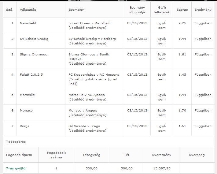 Várható nyeremény: 4165 FtEzt meg eddig csak a Biel vitte, kíváncsi leszek a végére.