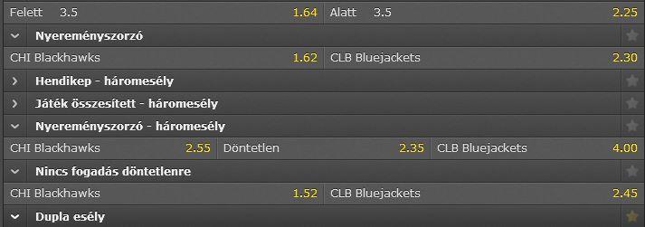Na én ugye visszafogadtam 2 esélybe vendégbe. Na már most ha ez döntetlen marad majd a hosszabbításban meg mégis a chicago nyer, akkor bukó van mert mind a 2 szelvény elmegy.