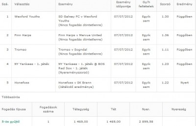 30k nyereségnél ismét kiszállok, + van még néhány nyitott fogadásom. 22,5k értékben.