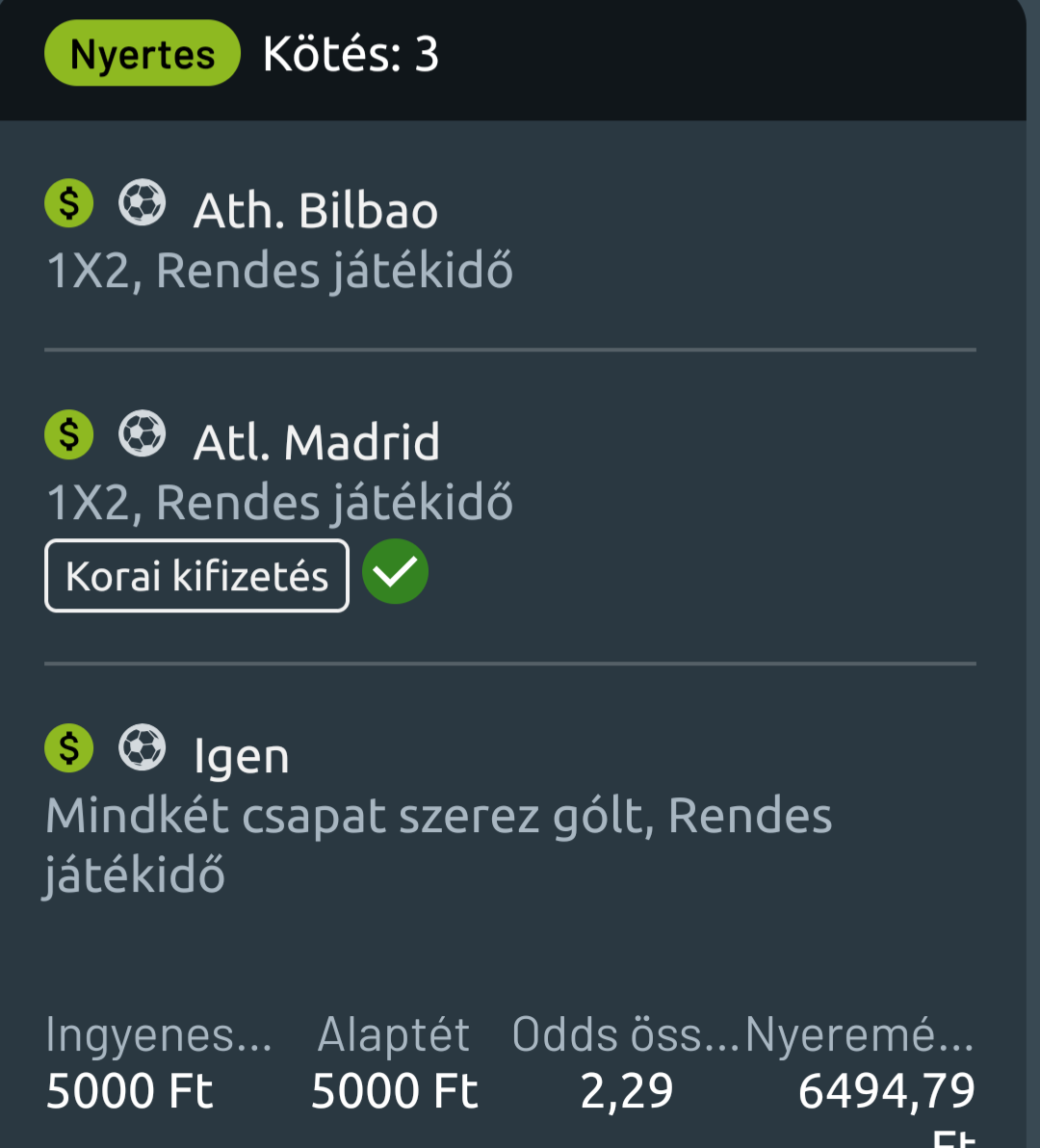 2 gól után korai kifizetés van? És ha a vége 2:3 lesz? -