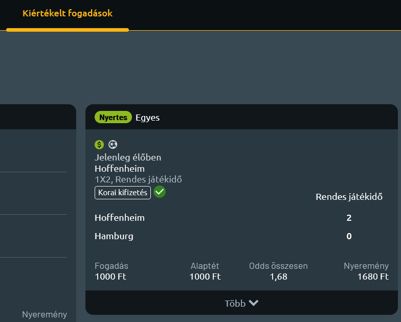 Tegnap is volt egy 10 meccses szelvényem, eleinte írt kis aprót, 500Ft környékét, aztán már ott jártam, hogy 6 meccs jó volt, véget is értek. Maradék 4 még nem kezdődött el. A véget értekbe olyan is volt aminél írta, hogy korai kifizetés. De onnantól végig csak annyi, hogy cash out nem elérhető. -