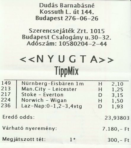 Áldom a hazaiakat is, meg azt is, akitől a tippet kaptam.