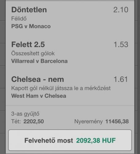 Mondjuk van még 11 forduló, belefér eladni a meccset ma...Franc... Barcelonáról pont lekéstem 1:1-nél a piros után volt rá 1,95, mire raknám lock, gól és vezetnek... pfff...