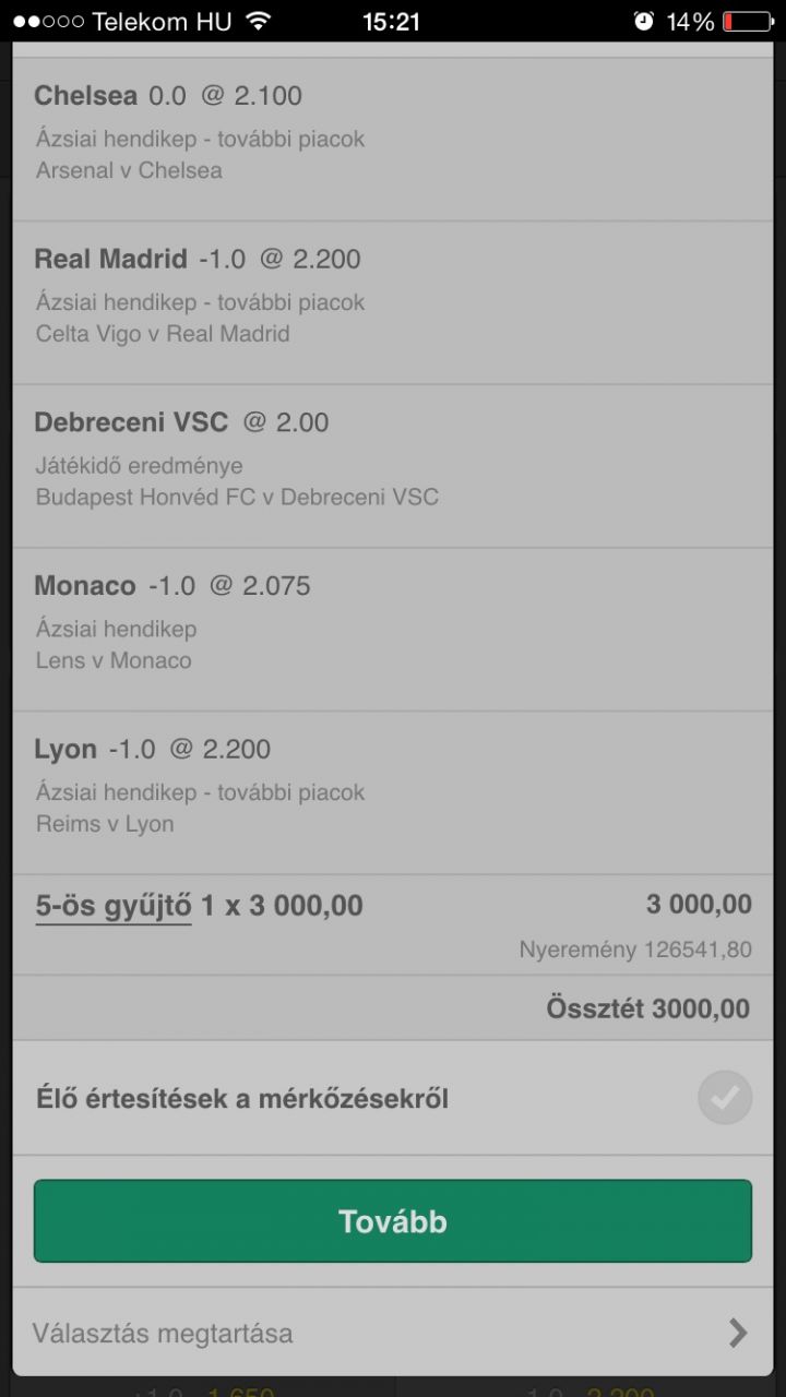 Kis szépítés a szörnyű hét végére, 500 Ft -> 1.616 Ft, drága DVSC-m majdnem vitte az utolsó fél percben...