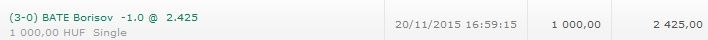 végül is így már mindegy, inkább az over 0.5-öt kellett volna rakni, de úgy zárta és nyitotta a fogadást, hogy kattintani alig lehetett, nemhogy válogatni és gondolkodni.