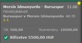 remélem lesz még valami török huncutkodás..most nem raktam semmit csak csendben figyeltem,de lehet Bursa 2:1-et még megrakom 2*-ért.