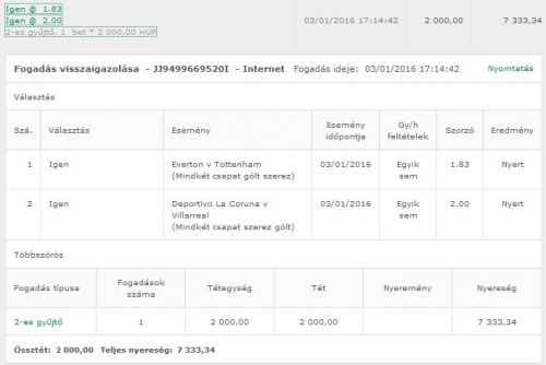 (Játékidő eredménye) 03/01/2016 Egyik sem 7.00 Függőben