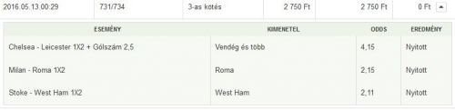 Mai mérleg eddig -90Ft és még bent van egy kettes kombi (KR Reykjavik v FH Hafnarfjordur (KR Reykjavik nyer) és U.A. Estado de Mexico v Tampico (gól szám 1.5 felett)), soha rosszabb kezdést