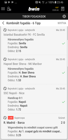Túl sokáig vártam. Mindegy így is nyomtam egy cash out-ot 11E-nél. 1000Ft ból jó mentés, nodenaaa. A Barca játéka az idei év elvárásainak egyelőre nem felel meg, nagyon egyben van ez a Real... még kulcsemberek nélkül is. Szépen egybe rakta ezt Zidane, a fiatalokat is gyönyörűen integrálta a Real játékába...