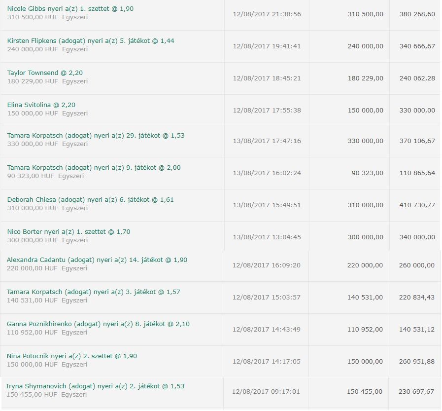 Szerk.: most látom van par bukó fogadás, azok pont mindig kisebb tétek es nem több százezresek..