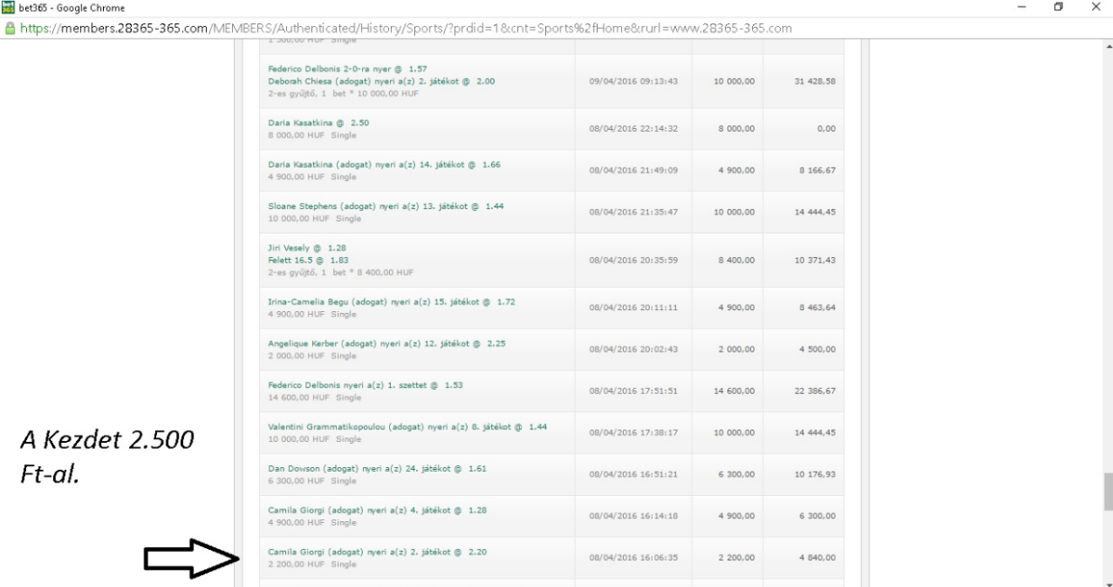 15k-val indultam egy hónapja, de erre volt akció hogy kapok 15k bónuszt ajándékba, így végül is 30k-val tudtam játszani, aminek volt olyan időszak hogy az egyharmadát már el is buktam (igazából óriási balszerencsék voltak, amikor 30-as szorzójú sok kötéses oddsaim egyetlen gólon mentek el), de aztán most visszajöttem 30k fölé.