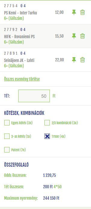 mi kamikaze? 500Ftos tétek? az 30 fogadas 16kbol. 1,5-1,8 oddsokon esélytelen lebukni, főleg ha van egy stratégiád es nem vaktában pakolsz.