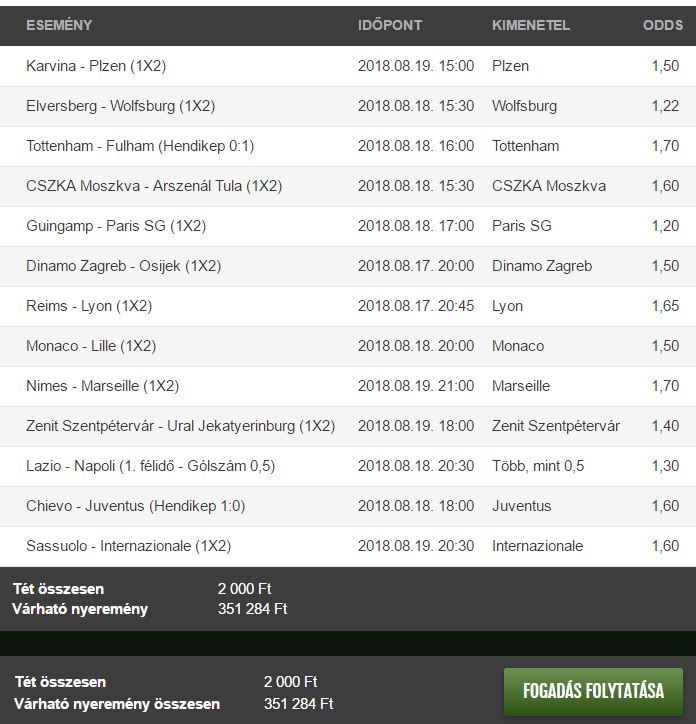 Ugye az első két meccset kihagyom a levédésből (nyilván a fogadóírodák olyan oddsokat adnak amik hosszútávon bukóak) de bízva a foci tudásomba meg a szerencsébe, azok kihagyásával a többi meccset talán a szorzók miatt már megtudom olyan összegből játszani, hogy a legvégén is rosszabb esetben 0. legyek.