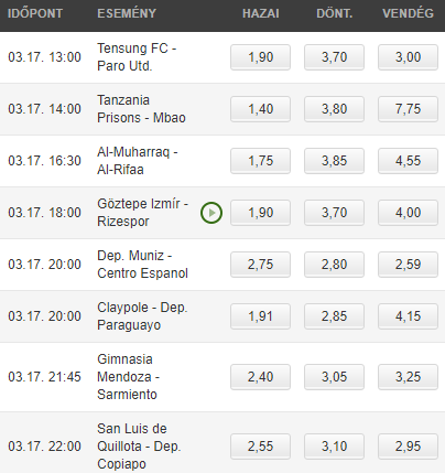 tétnélküli meccsek, hatalmas szorzók. szeretem az ilyen kombót.