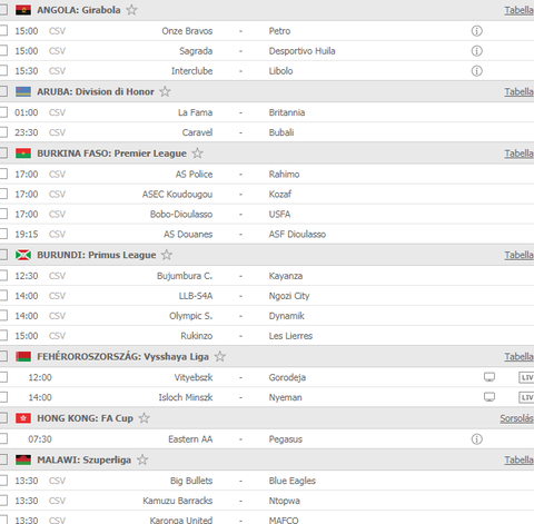 Azt írták, hogy a heti műsorba a várhatóan megrendezendő futballmeccsek kerülnek. Túl sok válogatási lehetőségük nincs, a Soccerway adatbázisát átfutva arra jutottam, hogy esetleg még a bhutáni és a burundi bajnokságból lehet meríteni a fentieken kívül... " [link]
