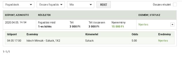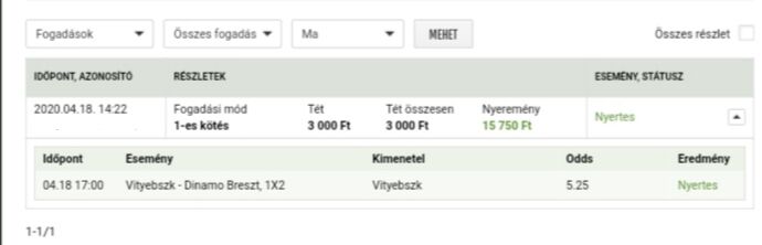 Mai nap (10.000 deposit, 15.000et már withdrawoltam, jelenlegi egyenleg ~27.5k, bet365)