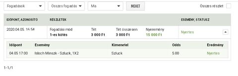 Van egy szelvény amire azt írja meg nem nyertes, lezárásra vár, viszont az egyik meccset biztonsági okok miatt felfüggesztették.