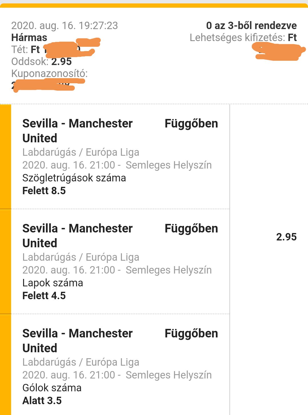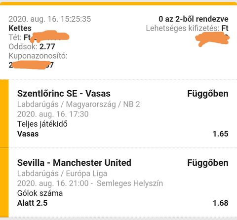 Én végül Sevilla győzelemmel raktam kötéseket, Fernandes tizi vagy Matic sárga kell majd.