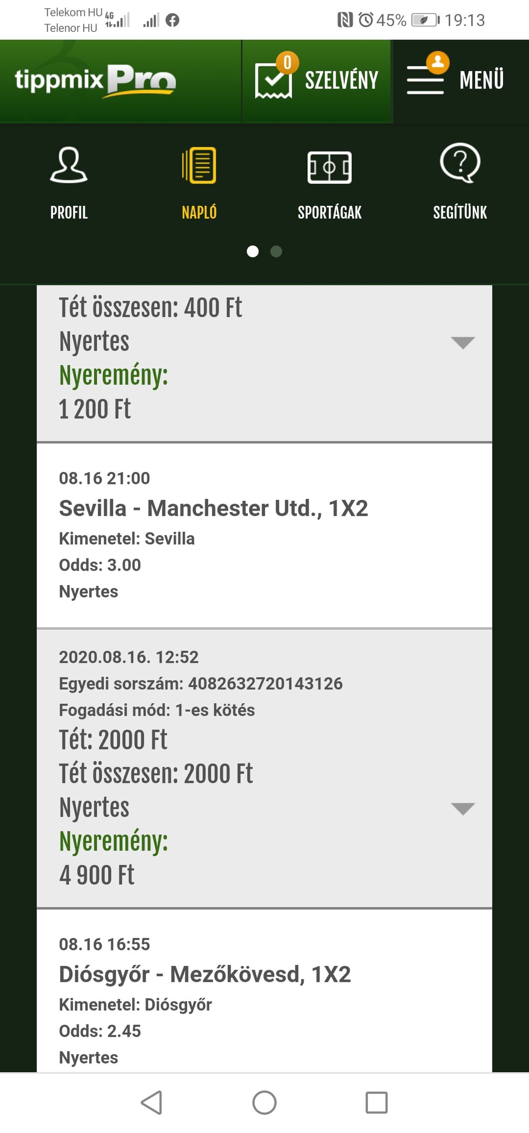 Köszi Sevilla! Jó kis odds volt a H.