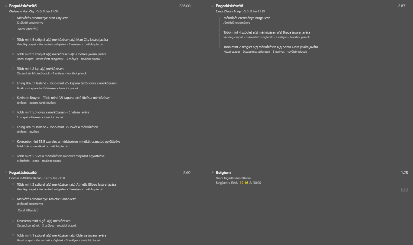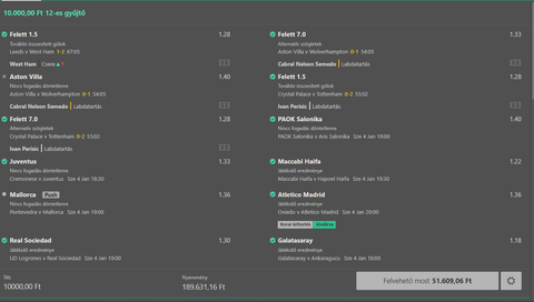 Mellé még megraktam, hogy Haaland több mint 2,5 kaput eltaláló lövés a mérkőzésen, az is jött simán, illetve megraktam még a Cityt 0-2-es hendivel ami amúgy nem jött volna de a 65.percben 3-0-ás City vezetésnél kivettem 500 forinttal kevesebbet a teljes nyeremény helyett ami nagyon jó döntésnek minősült.Gratulálok mindenkinek aki nyert ma. További sikeres napokat!