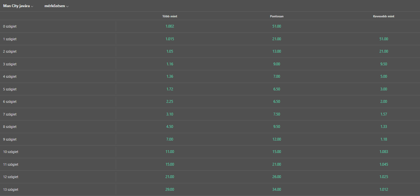 Több mint 8 szöglet a mérkőzésenOdds: 5x