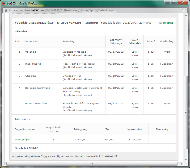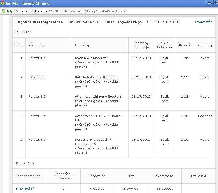 Tegnap jött minden, sőt még élő teniszt is raktam. Kár, hogy élőben visszafogtam a MU overt és csak 200Ft-ot nyertem rajta így.