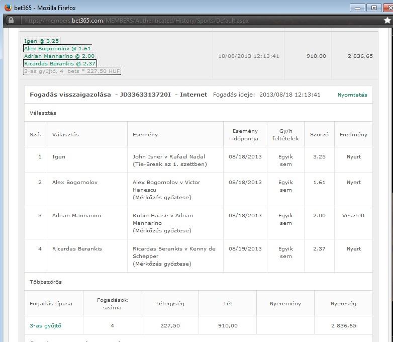 A két spanyol meccsre tettem, á mondom rakok még az U20-as meccsre is, csak úgy próba cseresznye alapon (a tét azért ilyen hülye összeg, mert úgy akartam, hogy kerek szám maradjon még hátra...
