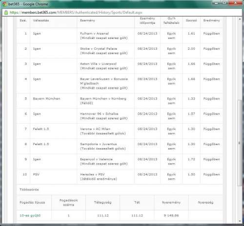 Na, szerda után most is szívok...Dortmund over kéne, + monaco meccsen 1,5 over....nagy mák kéne, az biztos. Még jó, hogy csak 2K-val tettem