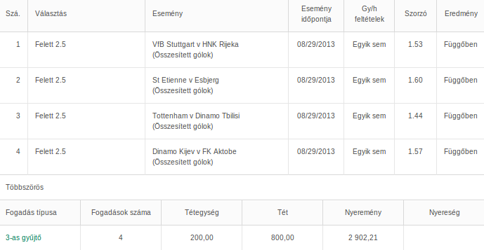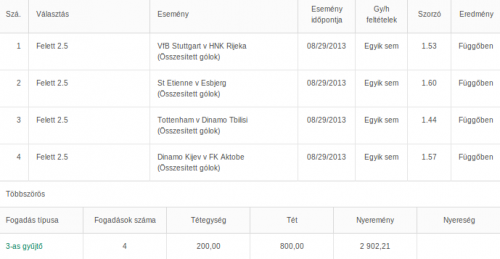 Celtic - Sahtar Karagandy Gólszám 2,5 Több, mint 2,5 1,55 Nyertes -