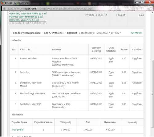 500Ft---->4250FtEgy kis szépség tapasz. Ha Juve nyer jött volna még 15K
