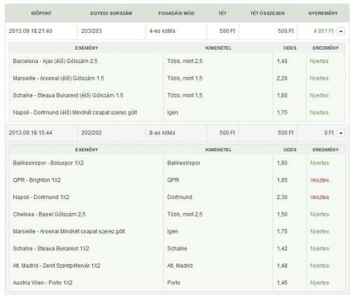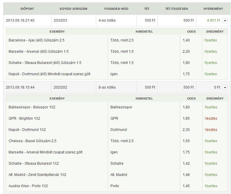 Hát, ha a Wien-Porton született volna még egy gól, akkor majdnem 9000 lett volna a nyeremény, így 1770 Ft 500-ból, ami nem is olyan rossz.